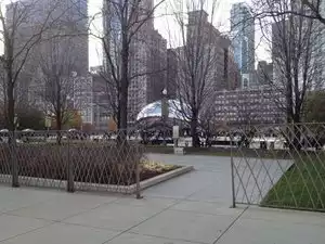 For years, I anxiously waited a trip 2 Chicago, 1st stop on my wish list "The Bean", Millennium Park. Imagine my disappointment as I approached the "Cloud Gate" 2 find it totally surrounded by high, plastic fencing! So much 4 photos but rather than miss the opportunity I climbed up a concrete fixture 2 snap a few before the local security noticed me. Not a way 4 the best view. No info. was available explaining when the fencing would B removed or IF it ever.