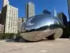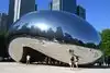 Cloud Gate (The Bean) is a feature sculpture at Millennium Park. It is the work of artist Anish Kappor (2004-06) and is the shape of moving liquid mercury with a perfect reflective surface, allowing visitors to walk around and even under the sculpture, seeing themselves as well as the park and parts of the Chicago Skyline in the background.