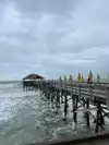 Our hotel (La Quinta) was a short walk from the pier. If you're driving in, there's a parking lot (paid parking) across the street. We got to the pier shortly after opening time (11:00 am) and enjoyed the views. There was no entrance fee charged and the two security guards we encountered were pleasant and seemed to be there principally for visitor safety. There are some built in benches along the pier walkway as well as umbrella seating for the Riki Tiki Tavern. We opted to sit at the far end of the pier under the Tiki bar roof and have lunch. We enjoyed both the service and the food and of course the great views. Neither the pier nor the restaurant was super crowded during our mid-week visit, which of course, made for a very relaxed lunch. Husband had shrimp and chips and I had a Mediterranean Bowl. Delish! You'll also find outdoor showers and plenty of clean restrooms as well as places to rent umbrellas and other beach stuff. If planning to sunbathe, get the umbrella! That sand can get seriously hot. We had stuff to do after lunch and chose to just linger a bit on the walkway and watch as surfers practiced grabbing a wave. There are no serious big waves here at midday, so it's a good spot to practice getting on and off the board. Shopping is limited. It seemed there was one small shop. But with Ron Jon's just down the road, there's plenty of shopping to be had elsewhere. There's a hot dog stand, an indoor restaurant, and a shaved ice truck. The pier is clean and well-managed and somehow manages to hold on to its legacy of an old-fashioned, small-town pier. We liked it and would go again.