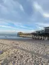 Had a great day at the beach and lunch at the restaurant on the pier. Great beach vibes, soft sand even in the water. Bring your own chairs and umbrella as the do gouge for theirs... and parking is rediculous at $30. However, we enjoyed every minute. The food at the restaurant was amazing!!! The salads are unbelievable as well as the seafood chowder and sandwhiches....great fries as well. Drinks were cold and delicious!! Highly recommend if want a day at the beach.....but don't expect too much in way if shopping....as not many places.....