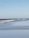 The sand bar here goes out with a slight decline for a great distance - kids were excited to be standing easily far out. Sand is clean/soft. Great beach day!