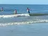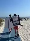 Even in May this beach was crowded with sun and surf fans. It is clean and waves are not intimidating. Dogs are allowed only with responsible owners. The entry area has shops, restaurants and showers. Parking is free but fills up fast. There are also shuttles available.