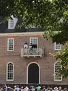 The fife and drums came down the street at 12:30. We didn't have time to eat lunch, though a quick deli/sandwich shop was recommended to us, and instead found Baskin Robbins for a delicious treat.