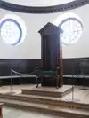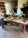 One of my favorite buildings is Charlton's Coffeehouse. When I first visited Williamsburg in 1985, a huge Victorian building sat next to the Capitol. After the last resident died, the family agreed to give the land to Colonial Williamsburg provided they moved the house to another location. They put the house on a truck and moved it to the other side of town, just outside the historic area. (It is now a B&B.) The Mars family (of candy fame) funded the reconstruction of Charlton's Coffeehouse and it opened in 2009. After touring the ground floor rooms, you descend into the original kitchen, where you are given a small cup of either dark drinking chocolate or dark roasted coffee.