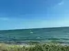 The beach was closed during the offseason to work on the parking lot. Typically it is a great place to see a sunset. Or fly a kite. There's always a breeze going through there.