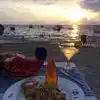We come here often in the afternoon, buy a bottle of wine at the wine bar at the center of the picnic ground. Tables on both sides are partially shaded. One can bring food but not liquor from outside. Enjoyable.