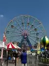 Going to Coney Island is like going to the beach in New York, nothing more, nothing less. Allow 45 minutes to get there by metro. On site the cliché loses a little of its luster, it is in fact a funfair which is all that is more banal, friendly but a bit out of date, dated in fact... The prices are high, especially for the food, not or few places to sit, little shade, it's a bit disappointing. The beach is huge, we went there to put our feet in the water (very cold despite the heat), be careful of the shards of glass. There are nice pontoons where people fish, it's really nice even if while fishing they listen to loud music!!^^ In short, the whole thing leaves a taste of disappointment all the same .