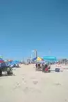 The boardwalk is fun with a variety of places to eat. The shower stations on the boardwalk can get crowded and parents were giving kids complete showers so they were hogging the shower stations whilst others were waiting. The fruit vendors seem to be numerous also and were even blocking the exit from the boardwalk. There should be some restrictions as to where the vendors can set up. The beach is nice and very refreshing and there were no loud boom boxes near to us.
