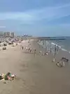 the beach is amazing, long and wide although full of garbage and glass. the public toilets stink at a distance, so avoid them. The boardwalk is nice, but same trees or umbrellas would be nice, as there is no shade at all and even in May it was too hot.