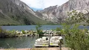 Got to ride a boat on convict lake. What an amazing experience. Dock the boat at the other end of the lake. There are some beautiful streams flowing under the boardwalk. The mountains around the lake stand mighty and tall. Great views of tiny waterfalls lining the mountains. Truly awesome.