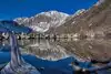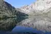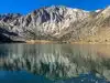 Convict Lake is a beautiful clear mountain lake surrounded colorful granite cliffs on three sides. If you happen to be there on a very calm day you can get perfect reflection pictures of the lake and cliffs.
