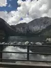 It was windy and sunny when we stopped here. Not far from the highway and a real gem. Wish we had time to walk around the lake. Looks like a beautiful hiking and picnic area with lots of parking. Lake is set right up to the mountains and crystal clear!
