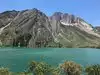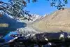 Parking area right by lakeside. Small marina at one side of the lake. we sat down and soaked it all in. There is a path all around the lake from where you can see the place at different angles. Very icy cold water.