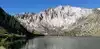Located just south of Mammoth Mountain off 395 you will find the road to Convict Lake. It's a beautiful lake and not a ton of people there if you get there early.