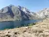With all the Lakes the camps from the mammoth Mountain's to Yosemite to Bridgeport this lake is not a good choice.. yes there's very good fishing here but this place is always windy Camp spots are not within the pine trees. mostly like brush & bush if hiking's your thing I guess this would be okay.. The lake is gorgeous the water is clear but from a camping experience this is not a good the lake.. I saw about a seven pound trout caught out of the river/stream coming out of the lake by the camp area. but very obvious it was just planted within a few days ago.. they are hundreds of other camps areas off 395, many more are situated for better camping in the pine trees with crystal clear waters. Take the extra time head north on 395..
