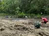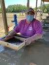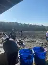 The field itself is extremely muddy and it can be hard to walk in spots. If bringing a wagon, make sure it has heavy duty wheels. Bring boots and clothes you don’t mind getting dirty. If coming on a cold day, bring rubber gloves, which will keep your hands from going numb when wet sifting. There is a hose station where you can wash off your boots and tools that will be caked with mud.