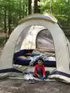 This is probably the nicest camp where we have ever stayed. The scenery is dense woods with plenty of room between the RV spaces. Electric, water and sewer worked just as it should. The place is remarkably clean and well attended. The shower house was spotless and worked like a champ. Nice and quiet at night. We enjoyed walking the trails with our dog. If there is anything not positive to say about it is the camp hosts need to keep their own dogs on leashes just like everyone else. No dog is completely predictable. Rules is rules even if you are the "host". If we lived closer we would probably be there frequently.
