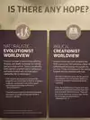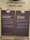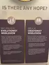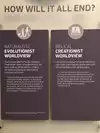There are literally plaques everywhere that side-by-side compare the evolution theory to the creation theory.