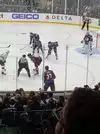 nice hockey party out front, with the fake snow, went to the game, food was super overpriced and not good