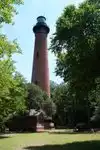 At the north end of the Outer Banks, one must drive a way to visit this lighthouse! It is located in a wooded area, surrounded by trees and houses…not standing alone like most are!