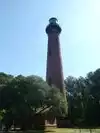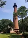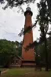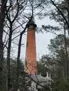 Beautiful lighthouse that emerges from the Carolina pine forest. The gift store is open but restricted to the number of people that can go into it.