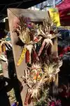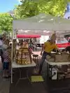 So many fruit and vegetable booths, you'll have a hard time deciding who has the freshest veggies. Don't hesitate - I didn't find any of them to be lacking. Flowers everywhere. Sample some cheeses, spreads and baked goods. You won't find any jewelry booths at this market.