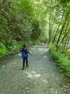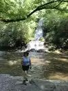 Waterfall hike. One member of family is mobility challenged and their scooter had wheels too small to navigate the minor roughness of the trail to the nearest waterfall but they thoroughly enjoyed the walkway over Deep Creek while others walked. Enjoyed by all.