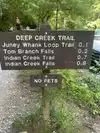 Except in the busiest of seasons Deep Creek is a less visited site which makes it a gem. There is a waterfall only a few tenths of a mile away down a flat trail. The waterfall has a bench to sit on to enjoy the falls. We have been there several times and it's always a peaceful experience. There are also other small falls to enjoy in the area. Deep Creek has bathrooms and picnic tables.