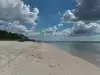 White sand and not a lot of people. Very relaxing and quiet. Lots of opportunities to find a variety of shells.