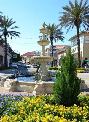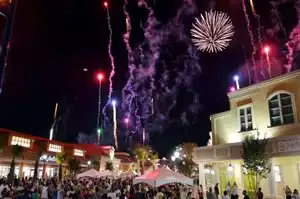 Super place to spend the evening browsing all the different shops and stores. Very safe friendly atmosphere. Music playing, water fountains, candy and ice cream shops! Palm trees lit up everywhere very pretty!