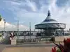The kids enjoyed a quick run through the water and a ride on the merry go round.