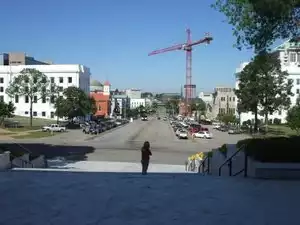 I did not go into the church as I feel that churches are meant to be tourist destinations. I was struck, however, by what is just up the street over one's shoulder. I turned 90 degrees and spotted the statue of Jefferson Davis, the President of the Confederacy and the man who fought to keep slavery legal, looking down from the Alabama State Capitol onto the church. The Confederacy is still being heralded just a few yards from Martin Luther King Jr.'s church! Alabama, take down that statue!