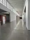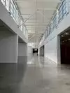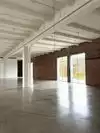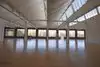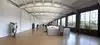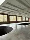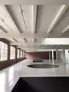 The building has been converted from an old Nabisco factory and in some places the stark walls of the factory have been preserved.