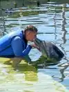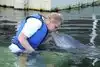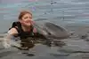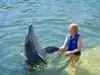 My sister has Multiple sclerosis but it has always been her dream to swim with the dolphins. She finally made it through Dolphin Plus. We were lowered in the water and Sam "our" dolphin interacted with us. Including a kiss for each of us. It was a wonderful experience.