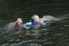 My daughter, son in law, granddaughter, and I did the signature swim at noon. It was truly amazing! The trainers were top notch and worked together with two dolphins to show us many exciting dolphin behaviors. I was particularly interested in how the trainers got the dolphins to work together to simultaneously push my son in law and me across the water. I then hung on to both for the ride back across the pond. I highly recommend Dolphins Plus. You will not be disappointed!