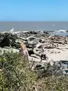 Very nice different kind of beach to visit. Unique strand with lots of old trees and wood in the sand. It’s located near the end of the island so kind of out of the way so there was plenty of parking available when I went. Some kids playing in the sand but no where to get in the water. Great for exploring and walking.