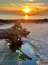 Interesting beach with numerous gnarled petrified trees. You won't see anything like this on most beaches. Good place for shells. Don't miss this beach on Jekyll Island.