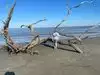 If you are in the area, you can park at the pier area and walk down to this beach. Lots of driftwood "trees".... you can also pay to ride horses out here, but we have not done so. Love it!
