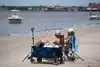 We drove over from st simons on vacation to see this beach and enjoy the day here. Long story short, the beach we saw has been all shored up with huge rocks to prevent erosion I’m guessing. Yes, you can set up chairs and umbrella, but can’t reach the water for swimming purposes. We got back in the car and went to another beach with an actual shore.