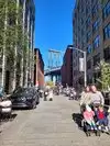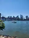 Really nice area with views of the skyline and many restaurants and free events in the evenings with really good local bands playing a variety of music. A great place to wind down from the bustle of the city. The only downside is the noise from the subway trains as they travel across the bridge.