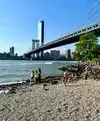 Between Williamsburg bridge and Brooklyn Bridge there is a cute park from which you can admire the panorama, and a beach where you can relax and sit down.