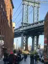 Super nice neighborhood with a view of Manhattan Bridge worthy of the film Once Upon a Time in America.. superb buildings, a relaxed and nice atmosphere for a little shopping.. from this neighborhood, you can take the Brooklyn Bridge to finish your market to Manhattan