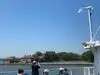 The boat to the island catches amazing views of Manhatten.