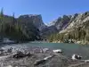 Starting at the Bear Lake trailhead (9475 ft above sea level) I hiked to Nymph and Dream Lakes. For someone who lives near sea level (on the left coast), it took me awhile to get as far as I did. They are worth it and I was able to meet and talk with other hikers along the way. Emerald Lake was about .7 mile further on and, I'm told well worth it, but my body had had enough and it was beginning to storm (rain, hail, and thunder).