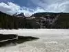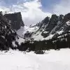 Right now the lakes are all frozen over and the trail goes over Dream Lake!