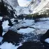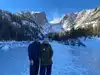 You will not regret taking this snowy hike. Dream lake is beautiful, you can even bring your skates, and the extra effort to continue on to Emerald lake is worth it. It was definitely good advice to rent some slip on microspikes from Estes Park Mountain Shop for $8. It was much easier to navigate the snow and frozen lakes with these.