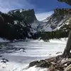 I have done this hike several times. You get three cool lakes (Nymph, Dream, & Emerald) on a 3 to 4 mile round trip hike with 600 feet of elevation gain. In winter and early spring this is a great snowshoe hike. You can rent snowshoes in Estes Park. Bear Lake Road is plowed. The path is well-trodden and easy to follow and is spectacular with all the snow. It's pretty cool to walk over the frozen lakes. In late spring the lakes are melted out but there is a lot of snow around them. It's beautiful in summer and fall as well. Get to the parking lot early or use the shuttle during summer and fall.