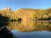 We hiked to Emerald Lake in Rocky Mountain National Park in September 2018 while on the first leg of a memorable road trip through the U.S. Southwest. At 9:00 A.M. on a fall weekday the Bear Lake parking lot was already full and we were lucky to get one of the last parking spaces at the Park and Ride lot from which we were quickly bused to the Bear Lake Trailhead. After an easy walk around Bear Lake (reviewed separately) we took the more strenuous and rocky (3.6 mile round-trip and 600 foot elevation gain) hike up to stunning Emerald Lake, passing both Nymph Lake and Dream Lake along the way. The climb was steeper than we expected but we took our time and the views at all three lakes certainly made the trek worthwhile. By the time that we returned to the Bear Lake Trailhead we really appreciated the restrooms and snacks and water that were available and then we continued on to Alberta Falls (reviewed separately). We had a great time!