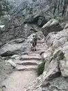 This is a beautiful hike if you are prepared for it. We rented cleats that easily slide onto our hiking poles from Outdoor World in Estes Park (Dave helped us and he was great!). I don’t believe you can safely do this hike without poles and cleats. Also dress properly. I couldn’t believe how many people were just wearing sneakers, lightweight jackets, no gloves and no hats. Sunglasses were also helpful