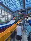 I give it a 4 star because there is room for improvement - firtst with the Great- Great friendly staff! Because of them i may go again withought lil ones if im ever able to get a sitter- the water is so warm room temperature is right - from the cleaning crew to the life guards yar the best! And the security - id like to say the entry needs to be better searched with big beach bags as i carried just saying -one life guard in kiddie slides told me i could not go down the kiddie slide with my three year old as my three year old kept crying he wanted to and im the mommy! so come on i inderstand older people alone should not be wondeing arround the kids section if not with a small child but it was basically boring especially since the water was too high and it was my sons first time he basically just walked arround and sat in the water and the lazy river im glad was not 5 feet as i had read somewhere- i was not gonna allow my three year old down the slide alone to deink or inhale water, hopefully that changes- food was good again friendly staff- restrooms need more room for changing it was very crowed even the walking arround just had to keep eye on people from steppin or shoving my three year old in and out the water- n yes there are a few rude guests so sad to say some grown ups that know better but dont behave respectfully- the surfing 🏄♀️ part is the most exciting gives you a chance to get the feel of surfing- i thought there was more walking space areound the water park like Bahama Beach but i think its in process i hear and hope - i like the way i was able to pay and skip the line because i was paying by card at entry- i didnt get to ride the slides would be nice to have a out of water play area for children to play supervised by their older siblings with qualified staff and cameras so that parents can enjoy themselves on the slides which i did not get to ride :/- then reclaim your children like at chuckie cheeses with a stamp or something- lol That would make any a Five star waterpark! Great and only indoor water park yet to get away from this chilly weather! Thanks for making such water park as this! Closes to getting away to the beach when lots of canceled flights this spring break!
